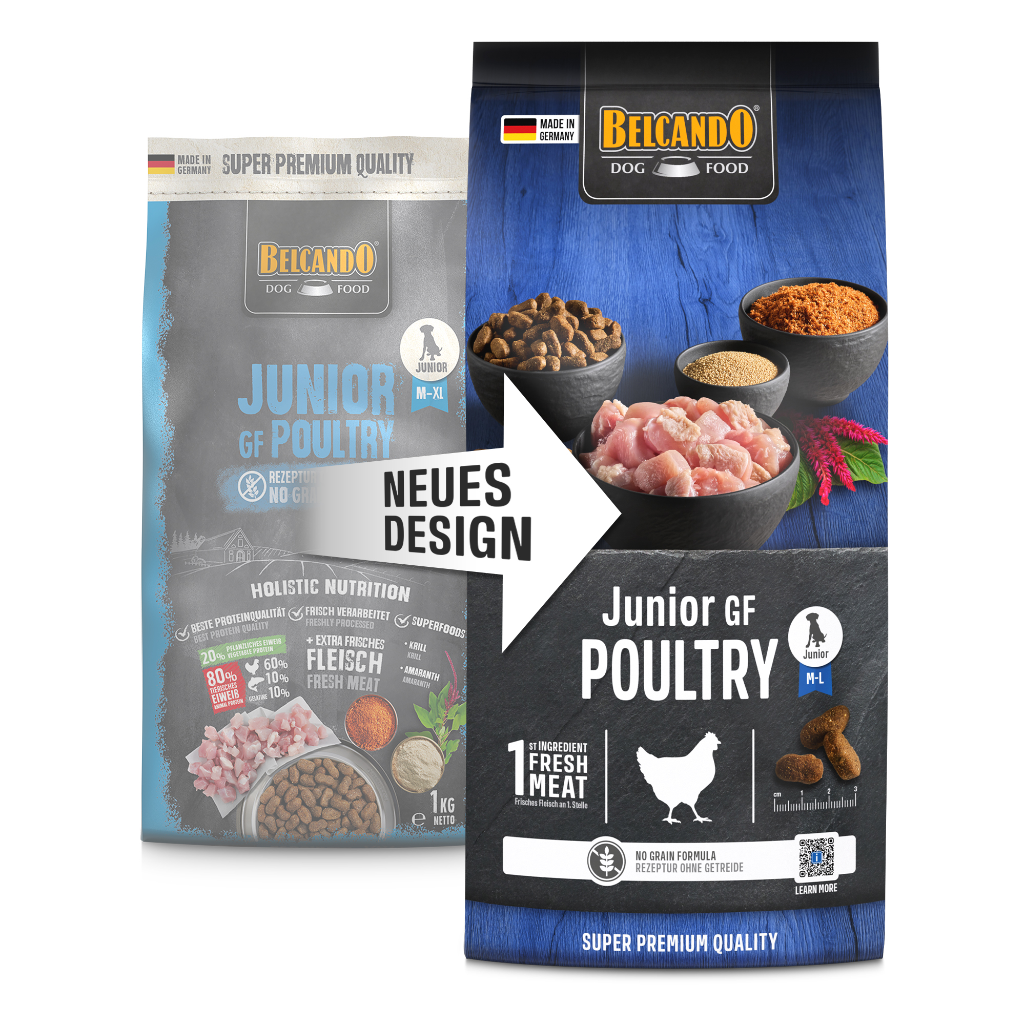 Wir haben unserer Labrador Hündin als Welpe schon das Welpenfutter gegeben. Seit dem Übergang zum Junghund bekommt sie das Junior GF poltry (getreidefrei). Das Futter ist nicht ganz billig, aber das Ergebnis spricht für sich. Unsere Hündin hat sich hervorragend entwickelt (gerade 12 Monate geworden). Das Fell glänzt mega(sie ist schwarz), worauf wir oft angesprochen werden. Der Kot ist fest und überschaubare Haufen, was für eine gute Verwertung spricht. Klare Empfehlung von mir. Unsere Hündind dankt es mit Vitalität und Gesundheit VG Thomas